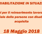 Corso "La riabilitazione in situazione" - 18 maggio 2018 Azioni per il reinserimento lavorativo e sociale delle [...]