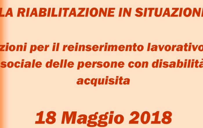 Corso “La riabilitazione in situazione” – 18 maggio 2018